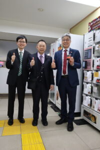締結式の後で、一行は実際に有機台湾中華調味料が販売されている横浜駅西口のビオセボンジョイナス店の店舗と、横浜市のSDGs(フードロス削減)の取り組みの一環として設置している風と光の自販機を視察。